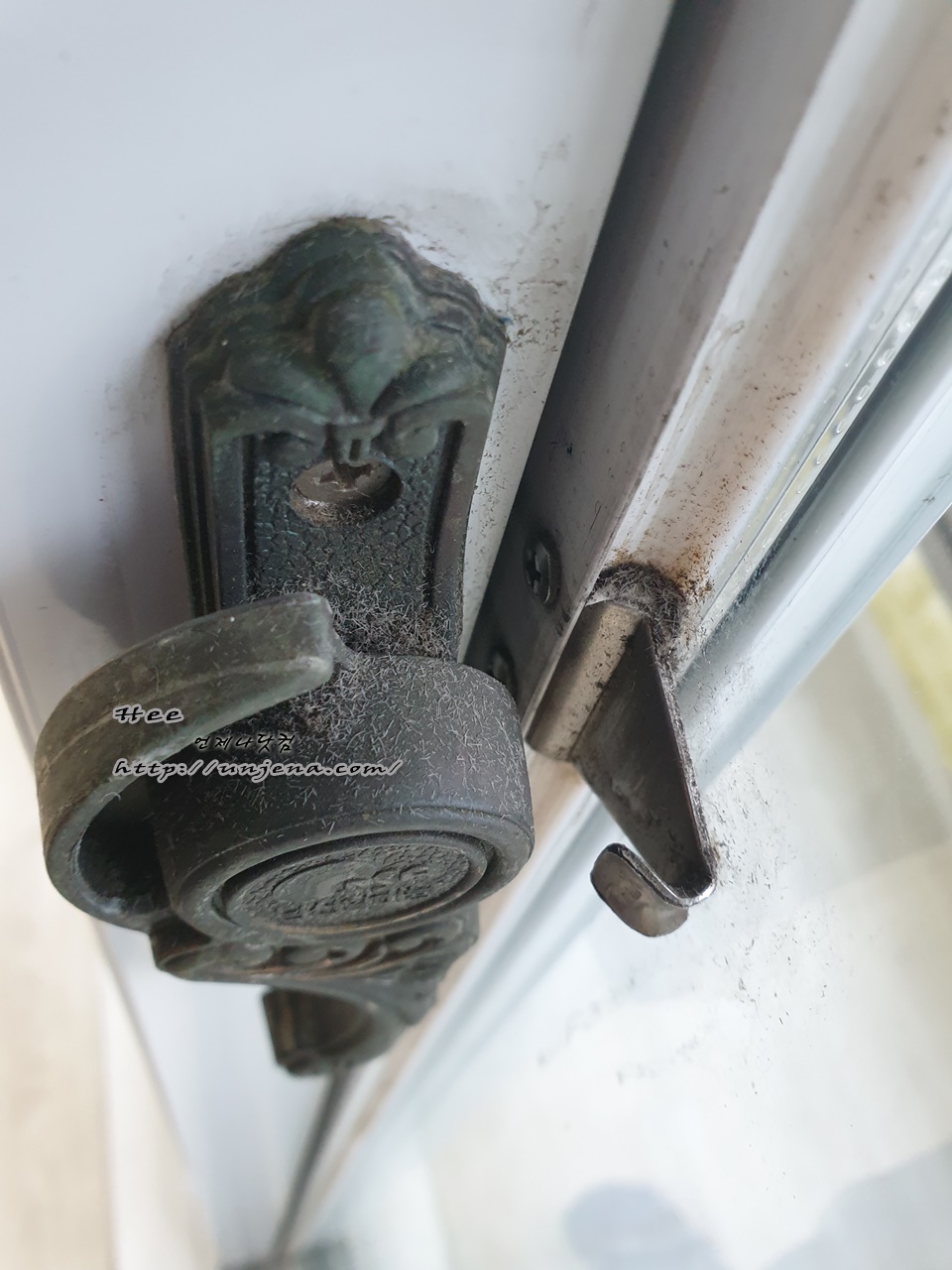 창문 손잡이도 보이는 곳들만 닦여 있고, 잘 보이지 않는 곳의 창문은 그대로 있었습니다.