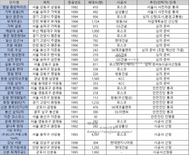 * 04.20- 국내 첫 리모델링 일반분양 단지인 오금 아남아파트의 착공이 시작되어 수정하였습니다.