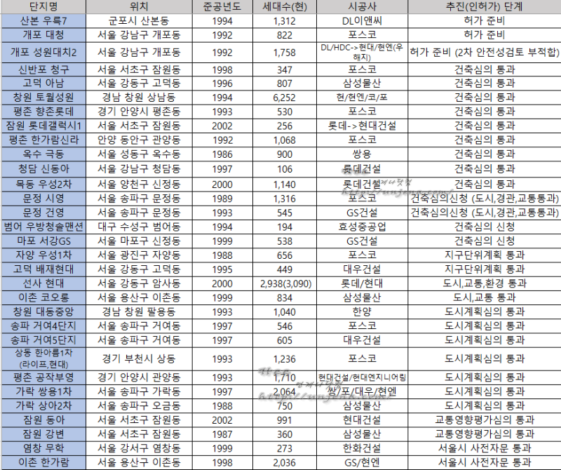 그 밖에도 서울 및 수도권은 물론이고 지방에서도 많은 단지들이 리모델링을 추진하고 있는데,