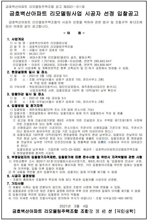 그리고 이번 금호벽산 시공사 입찰에 2014년 이후 약 7년여만에 리모델링 시공사로 참여한 겁니다.