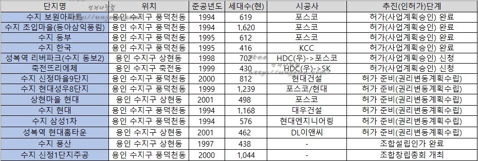 그동안 수지 보원, 수지 초입마을, 수지 동부, 수지 한국 아파트가 사업계획승인을 받았습니다.