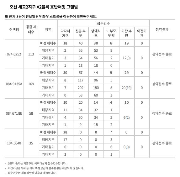 오산시 궐동에 위치한 세교2지구 호반써밋 그랜빌의 특별공급 경쟁률입니다.