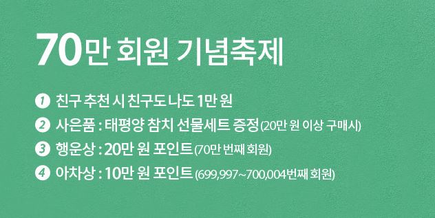아차상으로 699,997~700,004번째 회원에게는 10만원 포인트를 준다고 하네요.