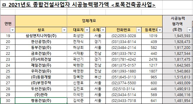쌍용건설은 2021년 기준 건설능력평가 순위에서 30위를 기록하고 있는 건설사입니다.