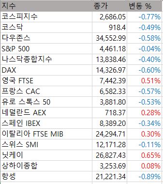 소폭 하락하며 마감하였습니다.