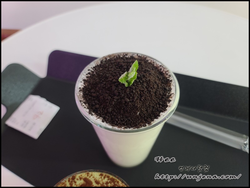 초코쿠키 가루로 예쁘게 디자인한 모습이 눈에 띕니다.
