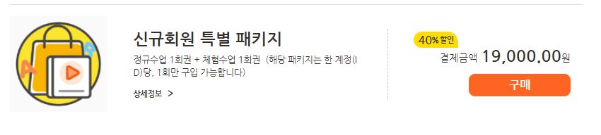 2회 수업권을 19000원에 구매하실 수도 있습니다.