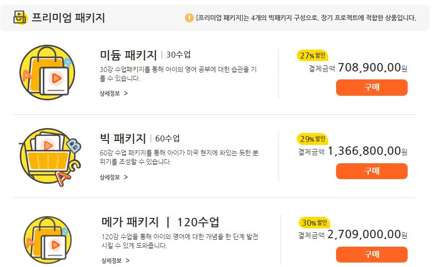 몇개월치를 한 번에 결제하는 프리미엄패키지가 있습니다.
