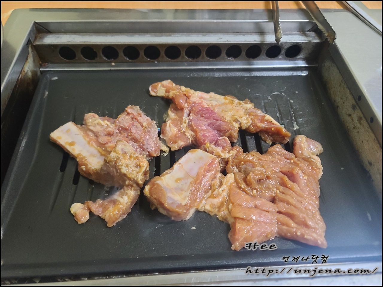 고기가 익어가면서도 양념갈비 치고는 상당히 연한 빛깔을 보이는데,