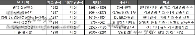 아파트 리모델링 사업 시공사별 현황 시리즈.