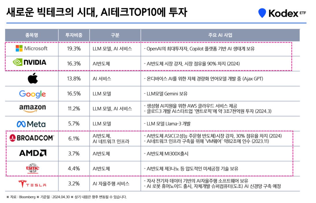Kodex 미국AI테크TOP10+15%프리미엄은, 나머지 두 자리를 엔비디아의 경쟁사 AMD.