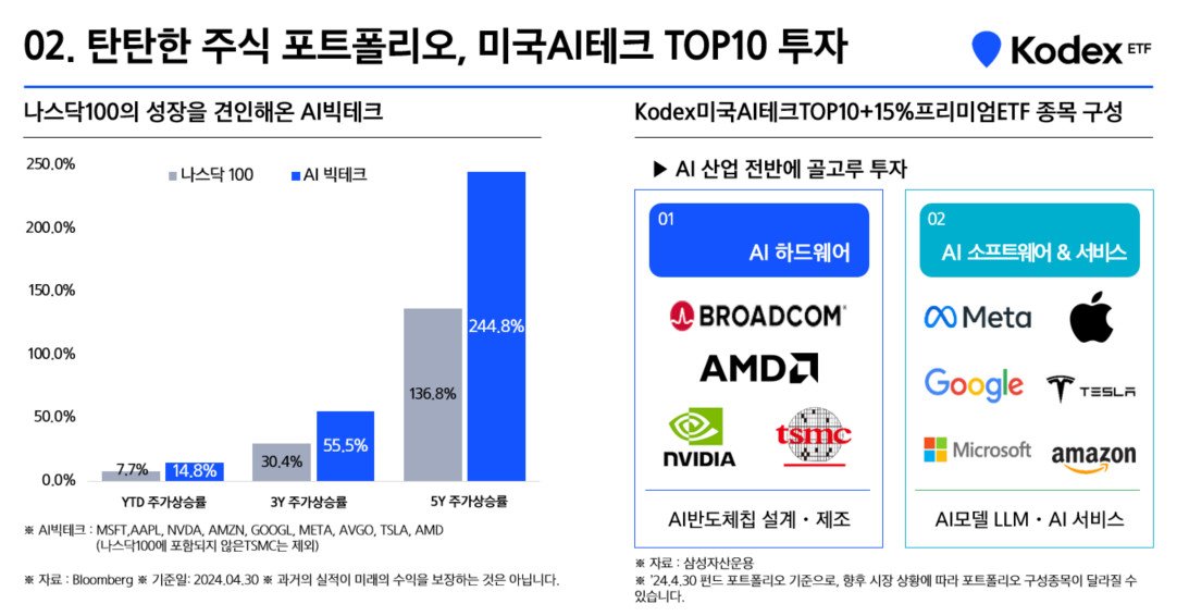 이처럼 KODEX가 새로 내놓은 Kodex 미국AI테크TOP10+15%프리미엄은,
