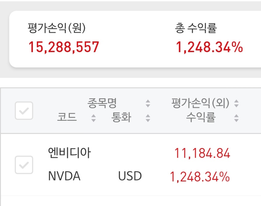 수익률 인증상의 저 계좌는 기존에 엔비디아를 1주 가지고 있었는데요.