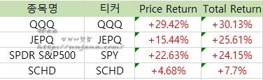추가로 위에서 비교한 1년 수익률은 배당금 재투자를 제외한,