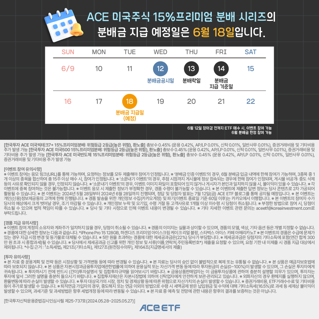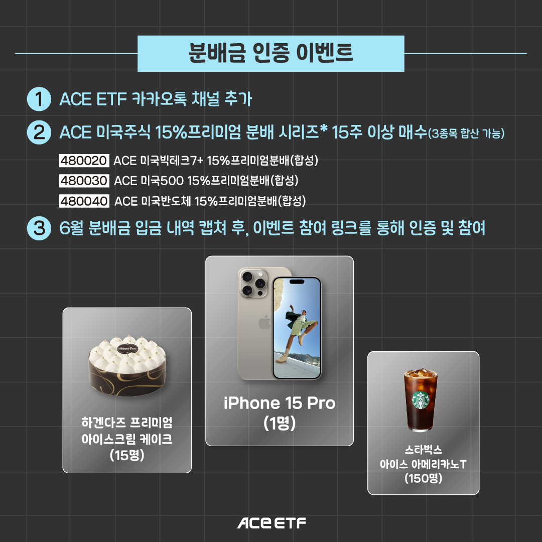ACE 미국주식 15%프리미엄 분배 시리즈의 분배금 인증 이벤트가 진행중이어서 공유합니다.