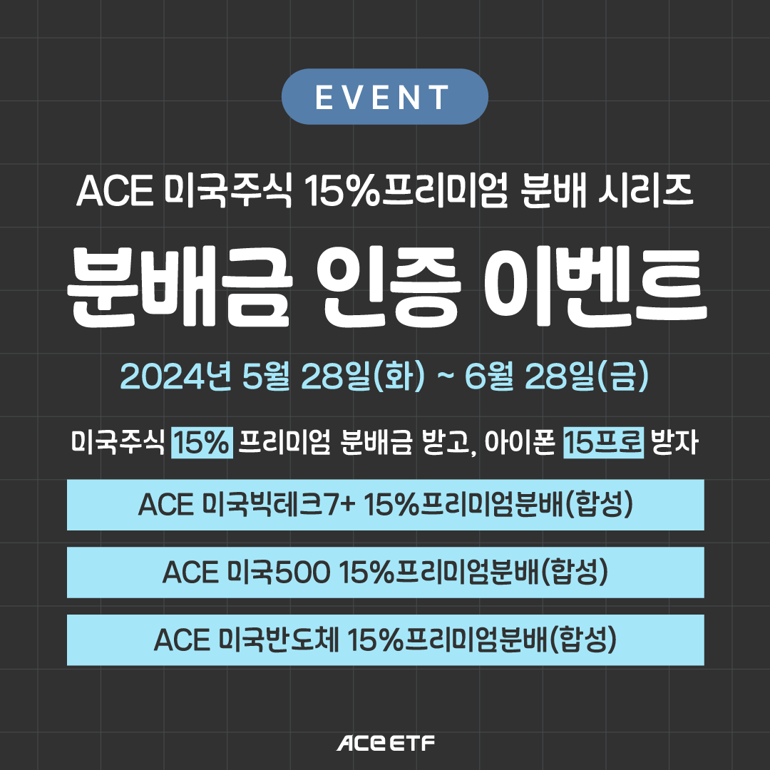 ACE 미국주식 15%프리미엄 분배 시리즈의 분배금 인증 이벤트가 진행중이어서 공유합니다.