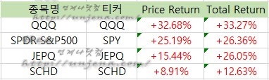 위에서 비교한 1년 수익률은 배당금 재투자를 제외한,