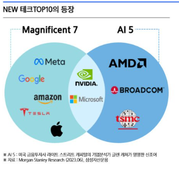 ** Magnificent 7 : 엔비디아, 마이크로소프트, 애플, 구글, 메타, 아마존, 테슬라