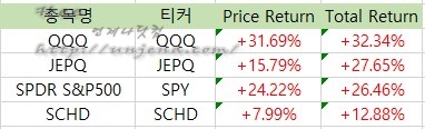 배당 위주의 JEPQ, SCHD는 배당금 재투자시 크게 차이가 납니다.