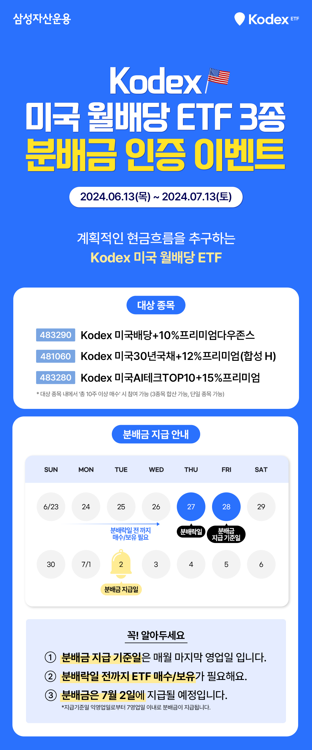 지난 5월 삼성자산운용의 KODEX ETF는 3종의 월배당 ETF를 신규 출시하였습니다.