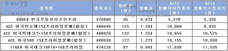 지난 8월 12일 장마감 후에 매달 중순에 배당을 실시하는 ETF들의 배당금 선언이 있었습니다.