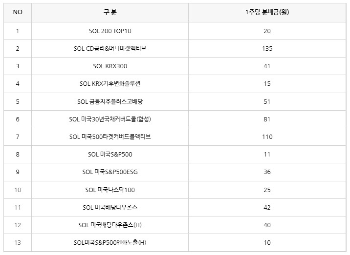 SOL ETF는 1영업일 뒤에 배당금을 지급합니다.