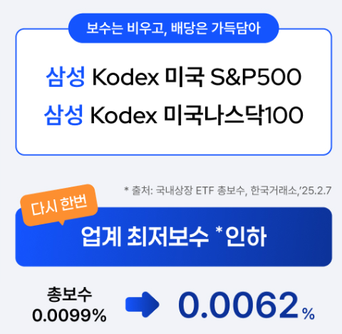 이번에 RISE 미국S&P500은 0.0047%로, RISE 미국나스닥100은 0.0062%로 인하했습니다.