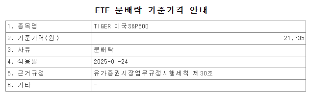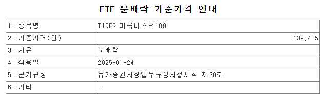 1월 23일 종가 139,505원에서 지급분배금 70원만큼 깎인 139,435원으로 기준가격이 변경됩니다.