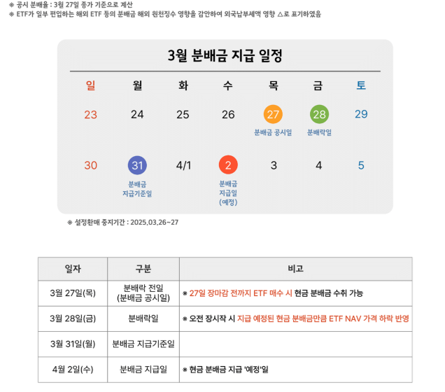 | 2025년 3월말 Kodex ETF 17종 분배금 공지. 지급예정일 4월 2일. (0) | 2025.03.28 |