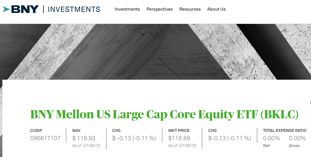 정식 명칭은 BNY Mellon US Large Cap Core Equity ETF (BKLC)입니다.