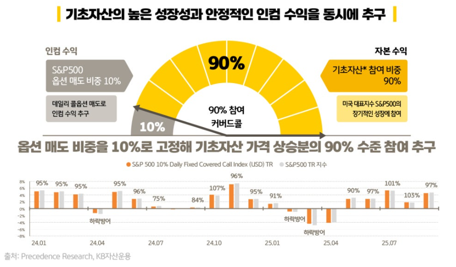 1세대 커버드콜보다 높은 배당률을 주면서도 더 낮은 콜옵션 비중으로 출시한 2세대 데일리커버드콜들이 많은 이유가 여기 있습니다.