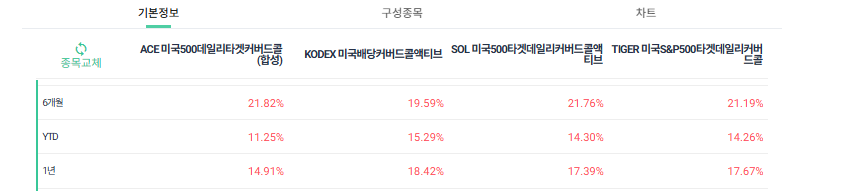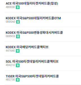 특히 지난해부터 크게 인기를 끈 커버드콜 시장에서도 이미 6개의 S&P500계열 커버드콜이 상장되어 있습니다.