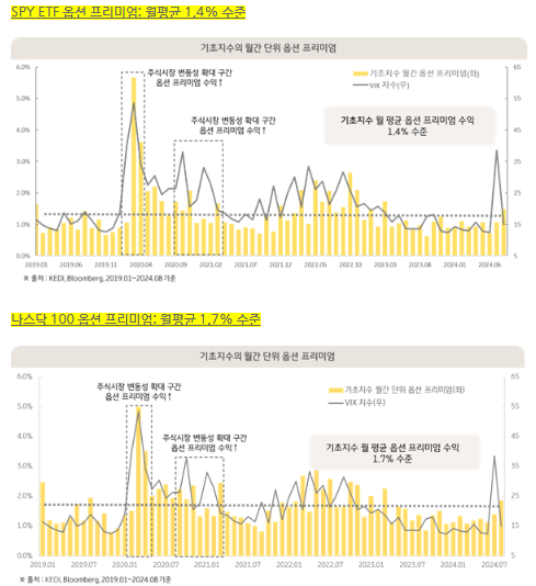 옵션프리미엄이 비싼 시기. 즉 시장 변동성이 심한 시기에는 분배금이 많아집니다.