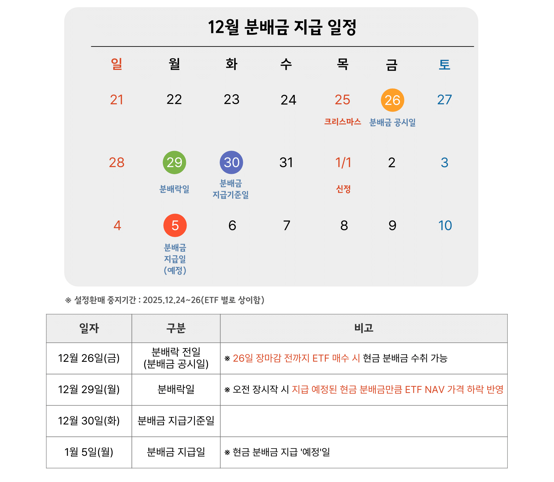 | 삼성자산운용 KODEX 월배당 ETF 2025년 12월 월말 분배금 공지 (0) | 2025.12.29 |