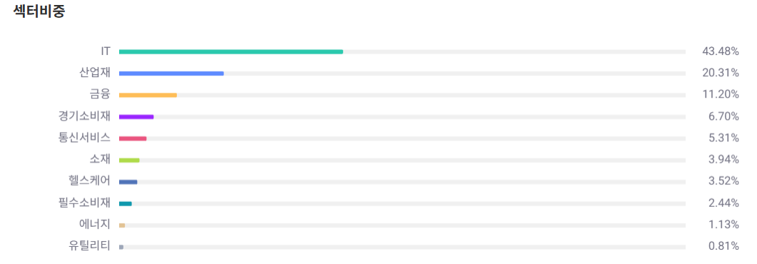 - 삼성전자와 SK하이닉스 국내를 대표하는 두 기업이 약 40%에 달하며 치중된 모습을 보이기도 합니다.