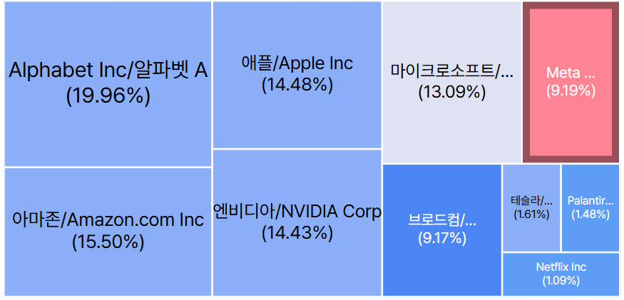 - META 비중이 단일 ETF 기준으로 가장 높음.