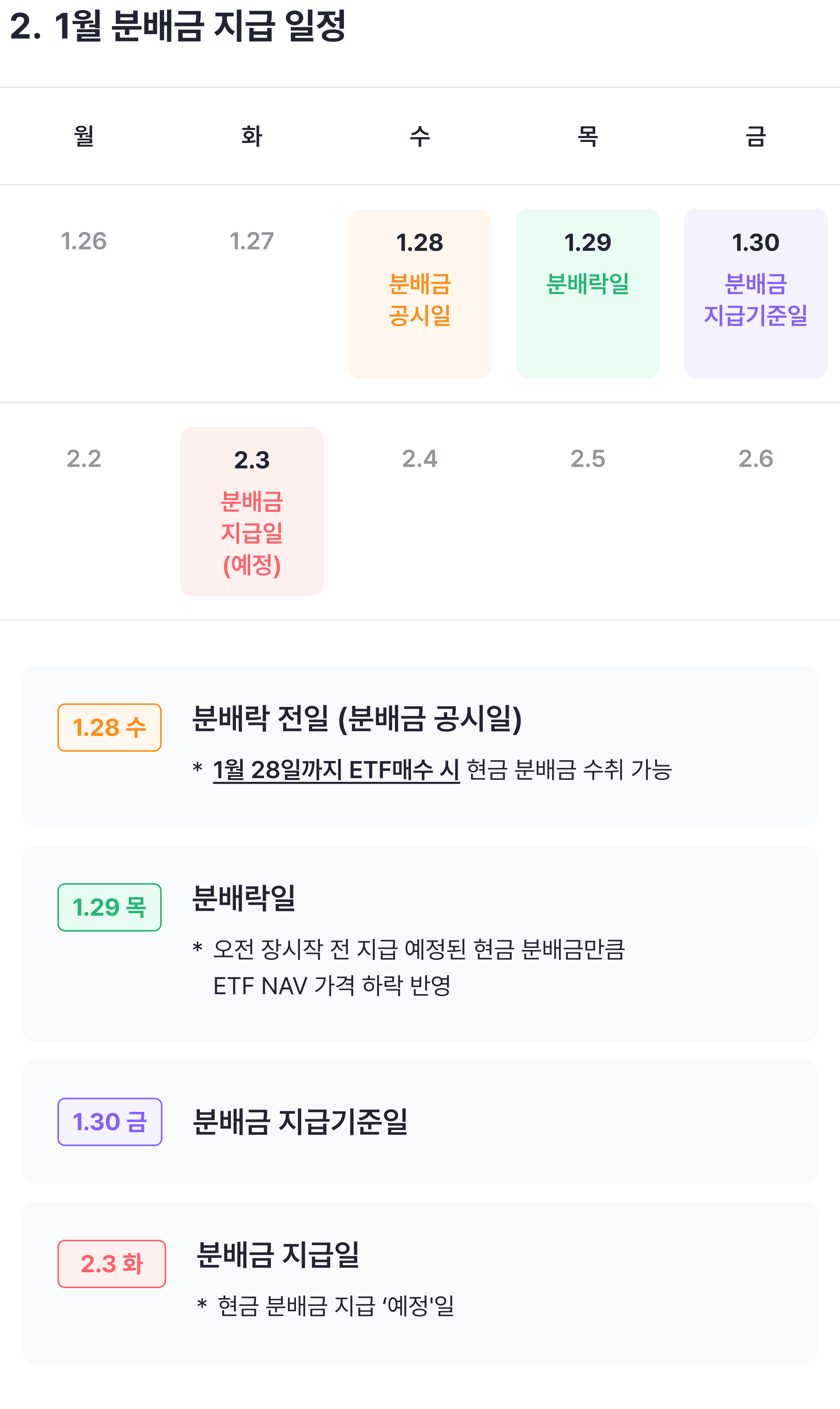 KODEX ETF의 실제 분배금 지급일은 분배금 지급기준일로부터 2영업일 후인, 2026년 2월 3일 화요일에 지급될 예정입니다.