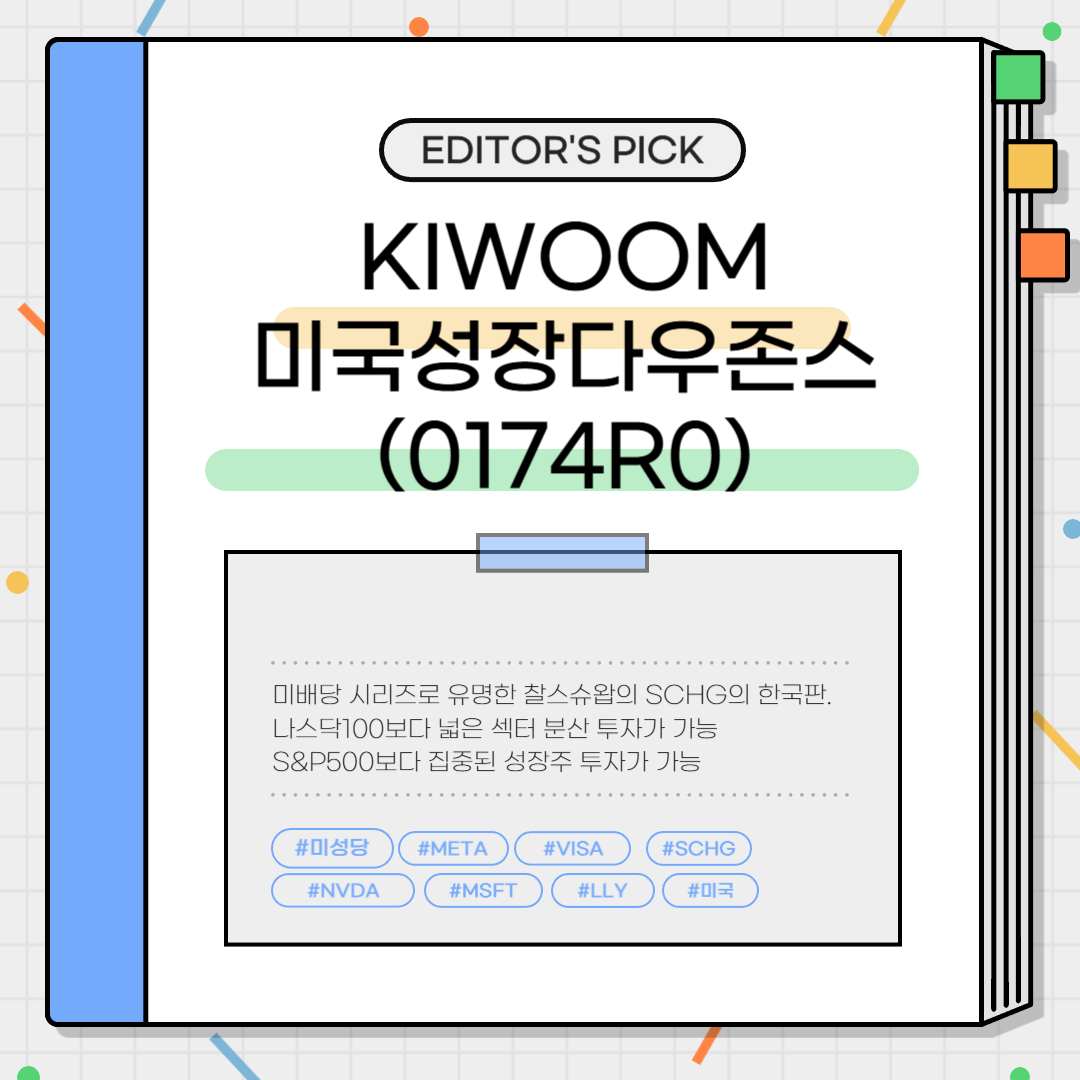 | KIWOOM 미국성장다우존스 | 0174R0 | 나스닥100보다 폭 넓은 섹터 분산. S&P500보다 성장주에 집중된 한국판 SCHG. |