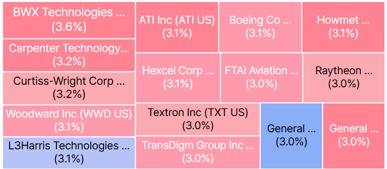 차세대 민간 주도의 우주산업 뉴스페이스 기업들인 로켓랩, 인튜이티브머신즈 등까지 모두 분산투자하는 것이 특징입니다. - 중동 리스크와 미·중 갈등 등 국방비 증가가 구조적으로 이어지는 환경에서