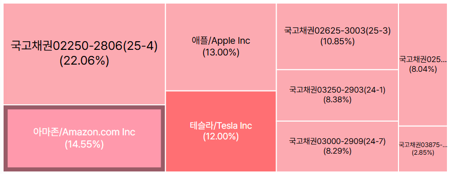 - 특징: 테슬라·애플·아마존 3종목에 약 40%, 국내 단기채권에 약 60% 투자하는 채권혼합형 ETF.