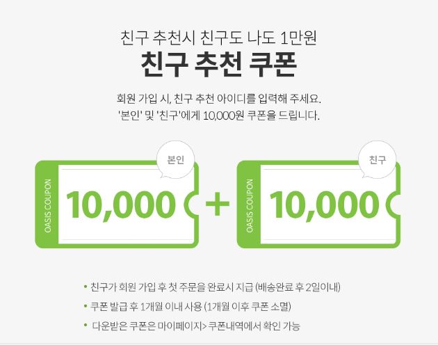 원래 오아시스마켓은 회원 가입시 친구 추천 아이디를 입력하면,