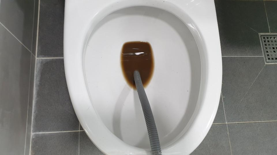 호스를 타고 녹물이 배출되는 영상!