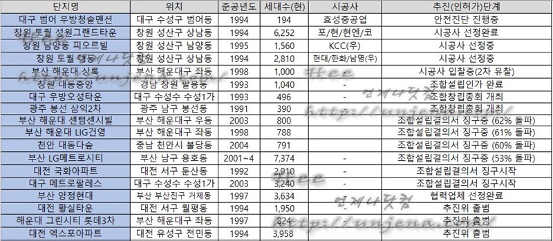 비수도권에서도 활발한 리모델링 추진현황을 정리해 보았습니다.