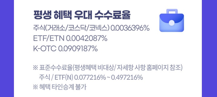 국내주식 거래수수료를 평생 0.0036396%로 제공하는 이벤트가 진행중입니다.