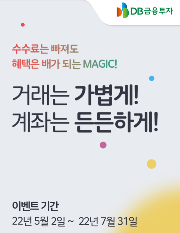 지금은 DB증권으로 이름을 바꾼 당시 DB금융투자는 금리인상발 하락장이 이어진 2022년 5월 2일부터 7월 31일까지 마이너스수수료 이벤트를 진행했습니다.